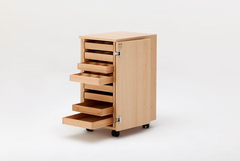 Vier Schubladen sind mit und vier Schubladen sind ohne Unterteilung.