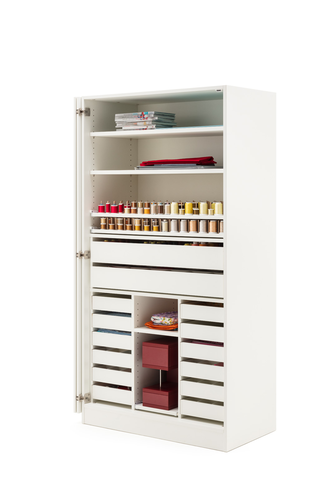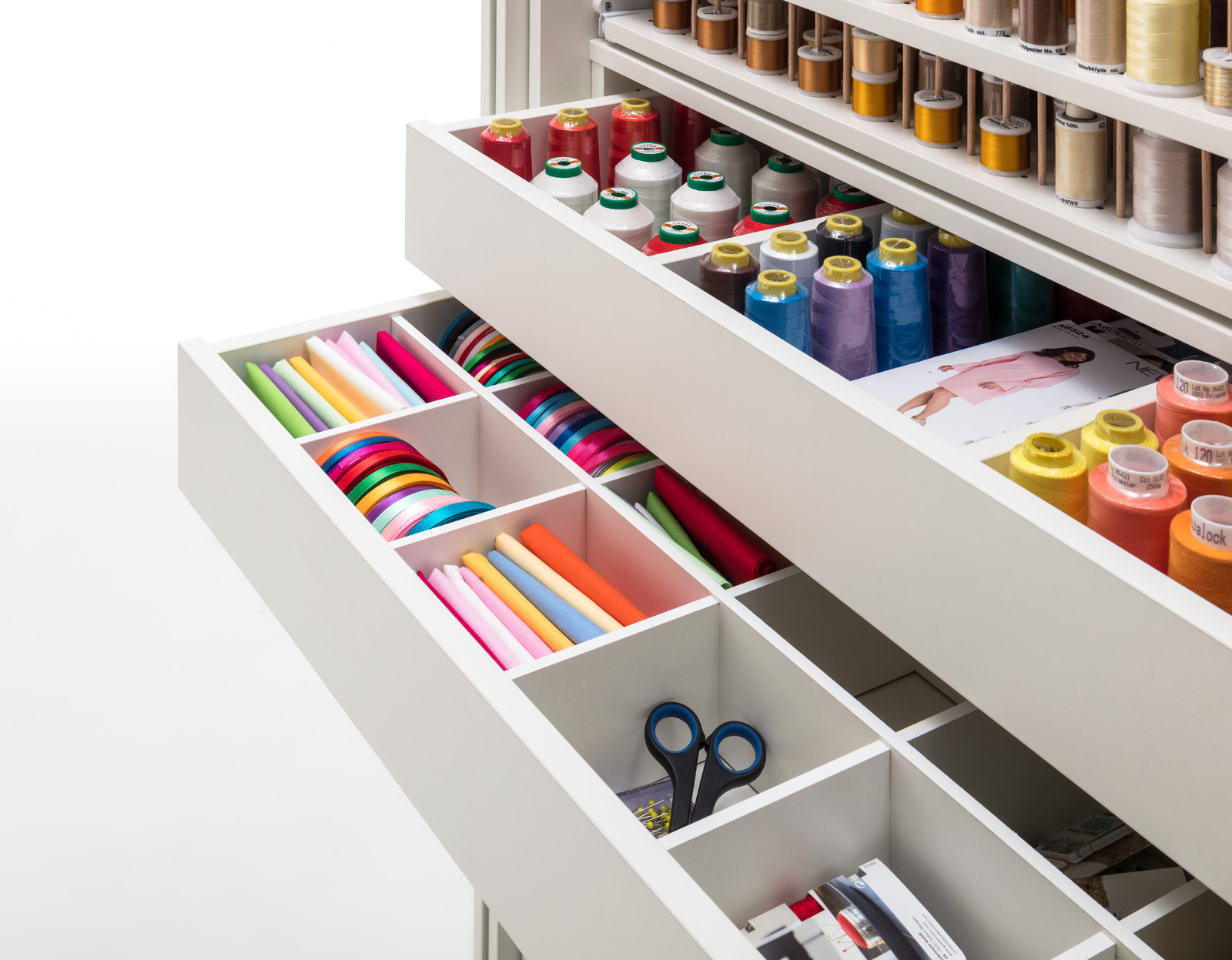 Scheren, Magazine, Schnittmuster und Kurzwaren können ordentlich sortiert und verstaut werden.