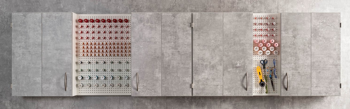 Die Pinnwände können, je nach Bedarf, mit den von uns mitgelieferten Spezialschrauben im vorderen oder hinteren Bereich zwischen den einzelnen Möbeln montiert werden.