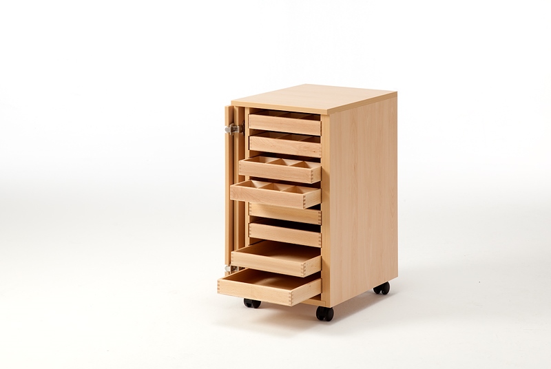 Dieses Möbel ist mit Türe links. Innen sind acht ausziehbare Schubladen.