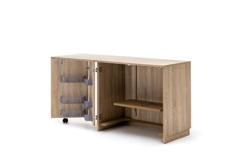 Mit dem neuen elektronisch gesteuertem "RMF-easy-Softtech-Lift" kann die Nähmaschine ganz einfach versenkt und wieder hervorgeholt werden.